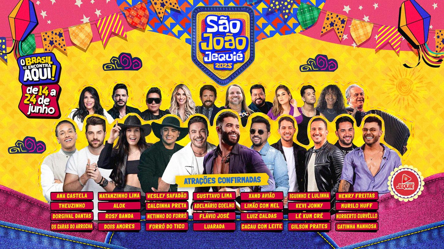 Entre as atrações que vão se apresentar durante as noites de festejos, estão nomes nacionais como Ana Castela, Alok, Wesley Safadão, Gustavo Lima, Xand Avião, Murilo Huff, Limão com Mel, Flávio José, Calcinha Preta, Adelmário Coelho, Dorgival Dantas, Rosy e Banda e muitos outros grandes artistas da música brasileira.